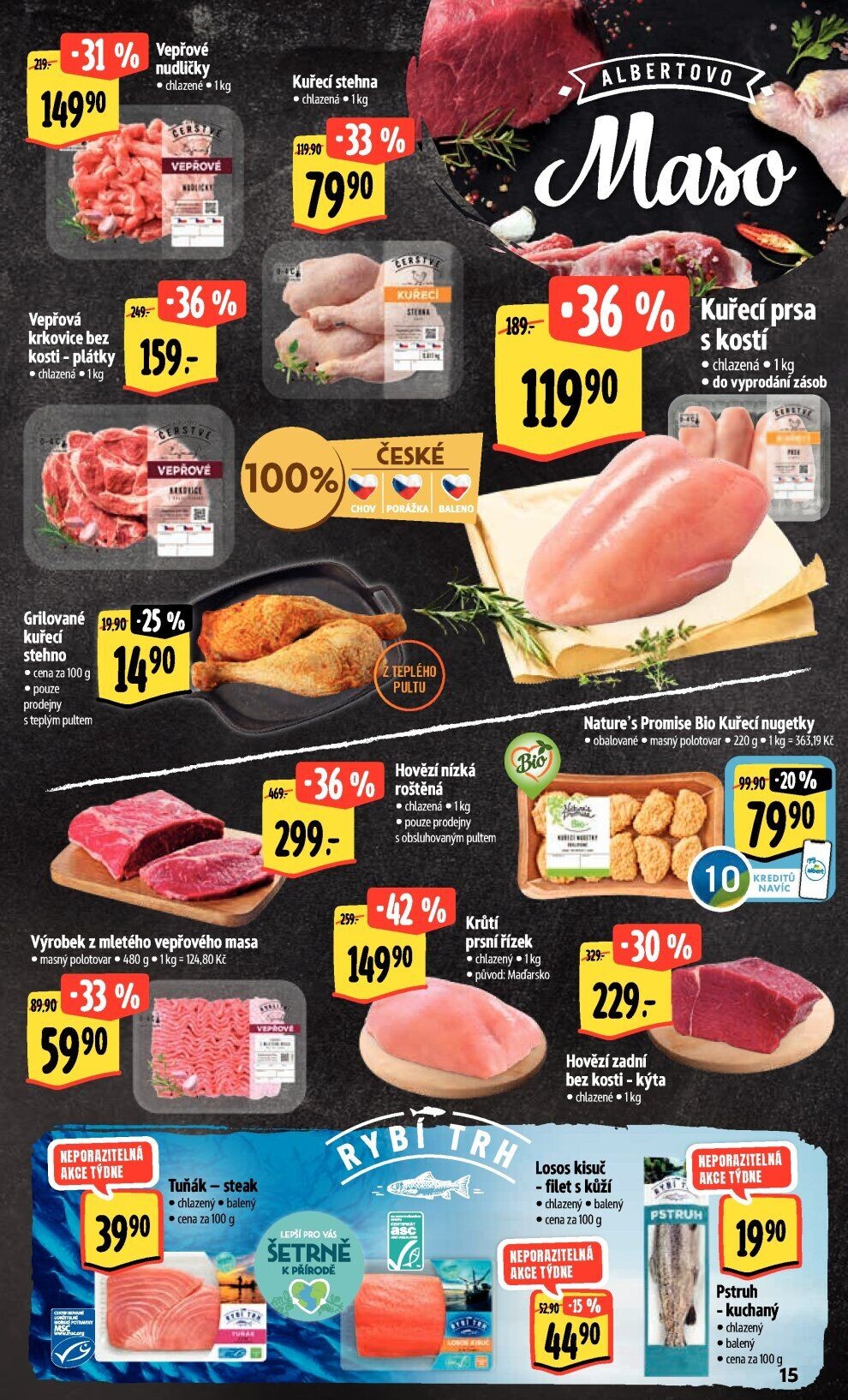 Maso vepřové nudličky Albert akční sleva v Albertu (6.9. do 12.9. 2023)
