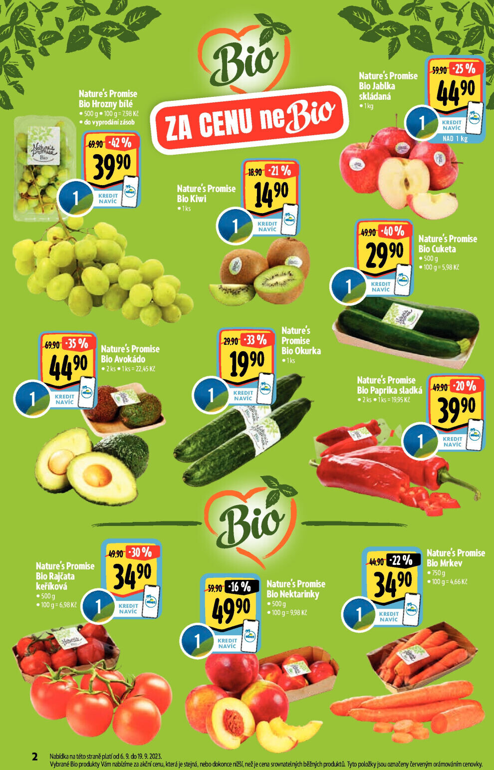Nektarinky bio Nature' akční sleva v Albertu (6.9. do 3.10. 2023)