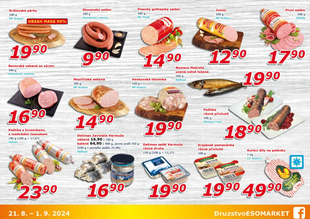 Akční leták ESO MARKET platí od 21.8. do 1.9. 2024