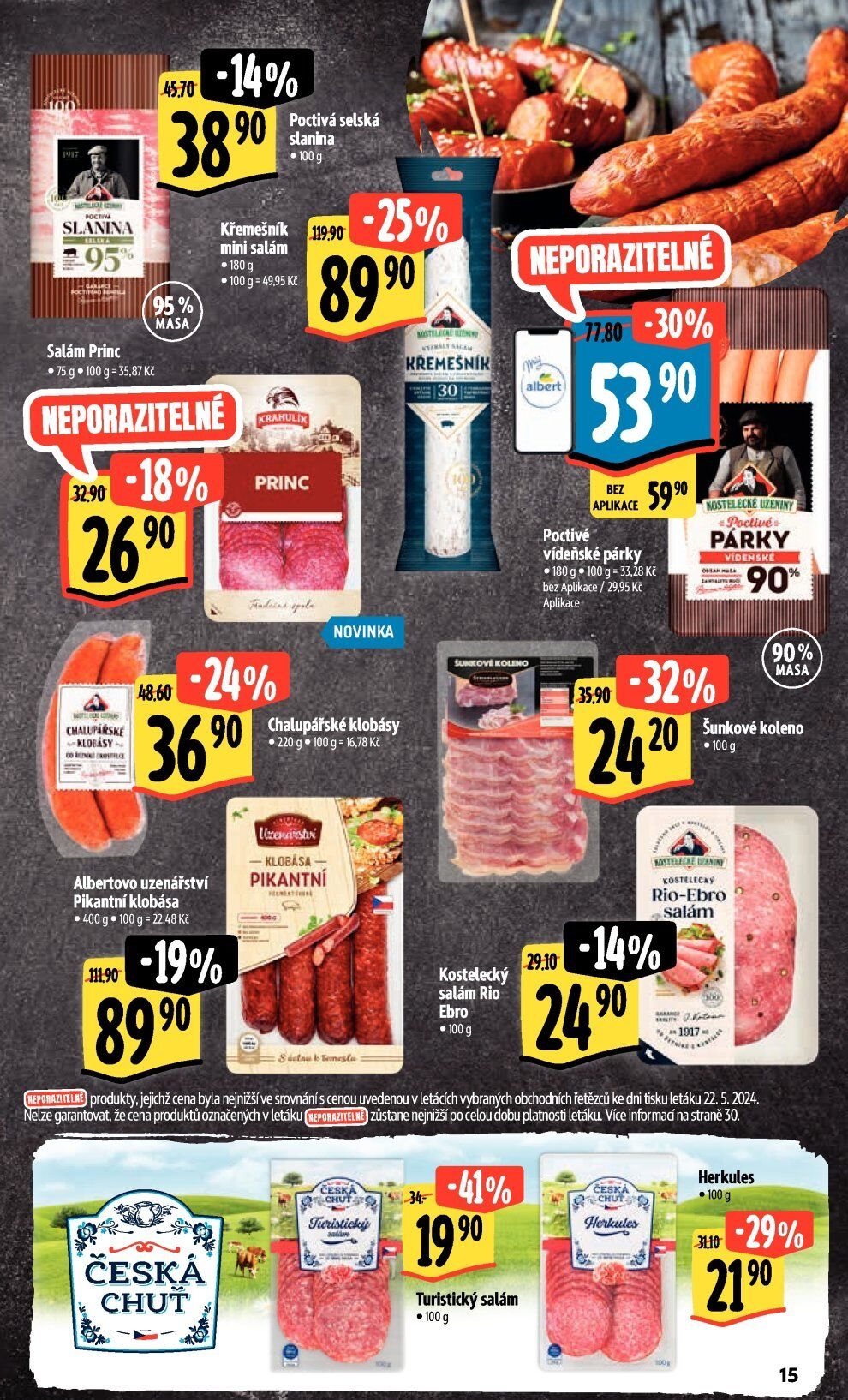 Salám turistický Česká chuť akční sleva v Albertu (29.5. do 4.6. 2024)