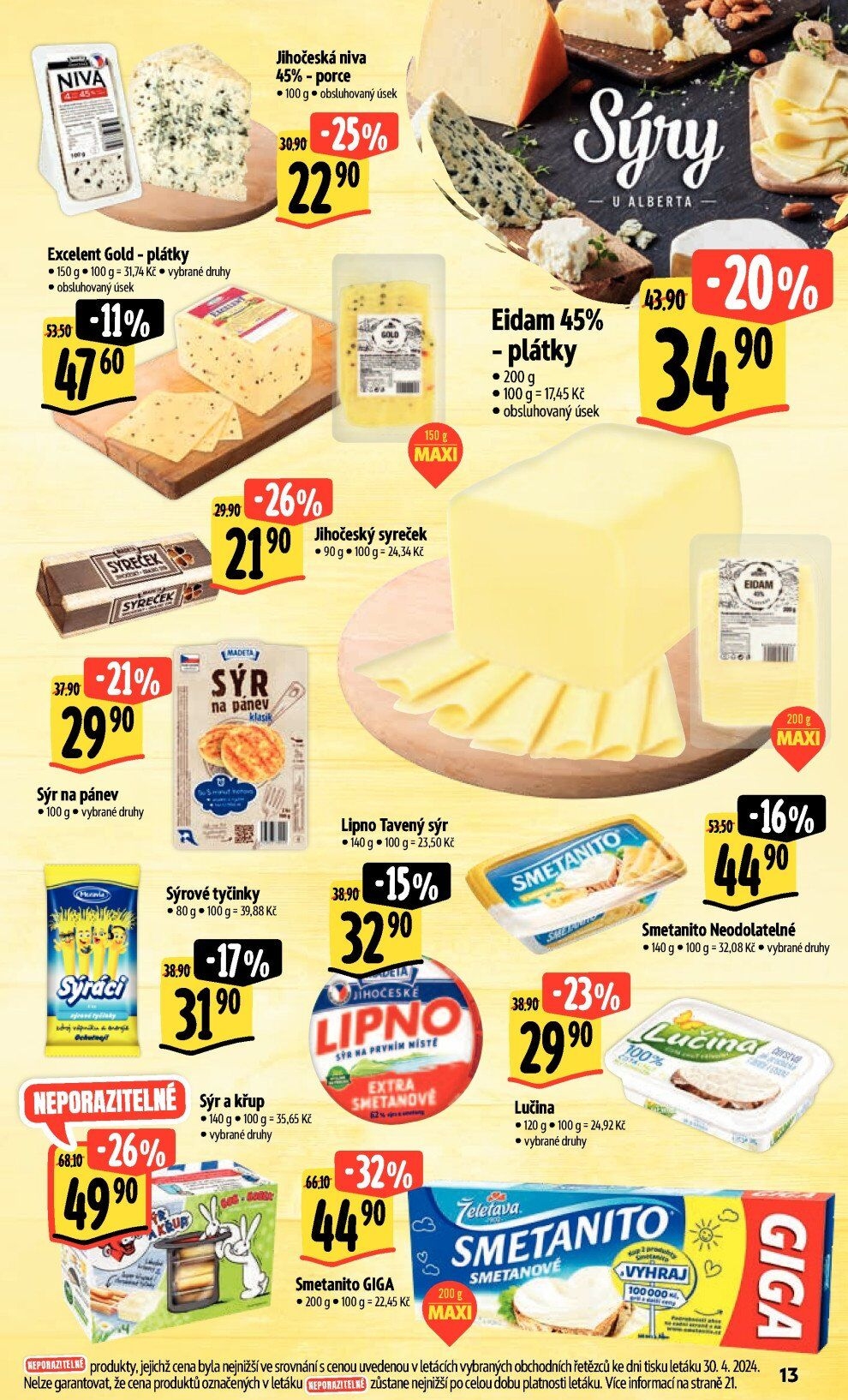 Sýr Eidam 45% Albert akční sleva v Albertu (9.5. do 14.5. 2024)