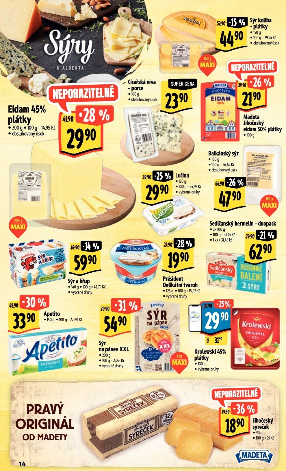 Sýr Eidam 45% Albert akční sleva v Albertu (22.11. do 28.11. 2023)