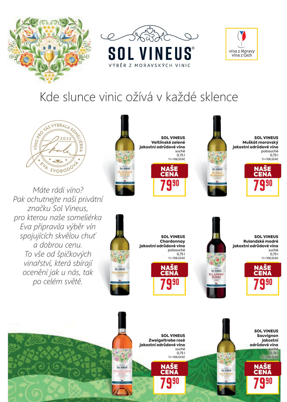 Víno Muškát moravský Sol Vineus akční sleva v Bille (20.8. do 9.9. 2025)