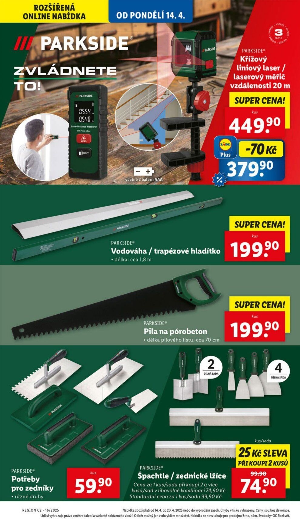 Zednické nářadí Parkside akční sleva v Lidlu (14.4. do 20.4. 2025)